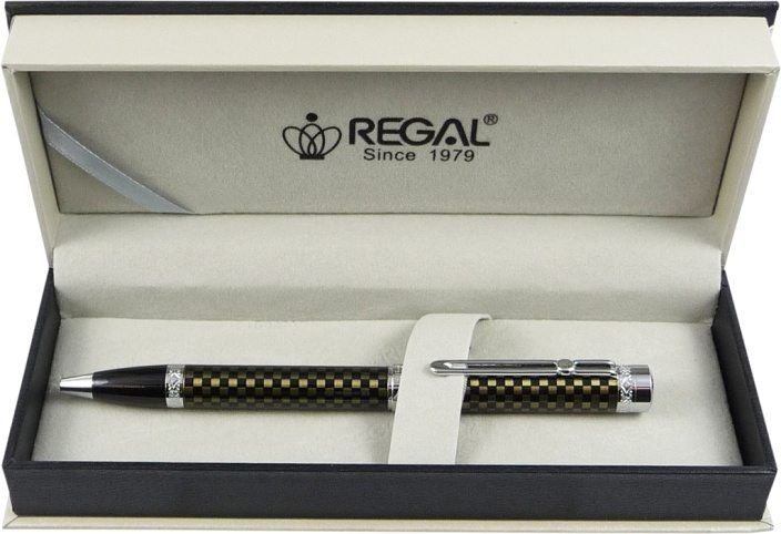 Kuličkové pero s vyměnitelnou náplní uložené v dárkové krabičce, barevné kovové tělo se stříbrnými doplňky, náplň modrá + dárková taška Regal