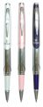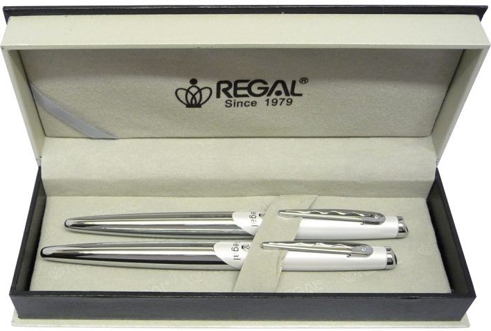 Kuličkové pero s vyměnitelnou gelovou náplní + roller s vyměnitelnou náplní uložené v dárkové krabičce, stříbrné kovové tělo a barevné vičko se stříbrným klipem, náplňě modré + dárková taška Regal