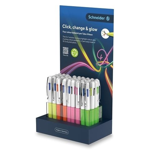 Kuličkové pero SCHNEIDER Take 4 Neon - stojánek 36 ks, mix barev