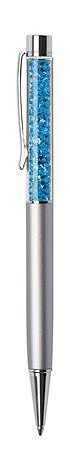 Kuličkové pero, stříbrná, plněné azurově modrými krystaly SWAROVSKI®, 14 cm, ART CRYSTELLA