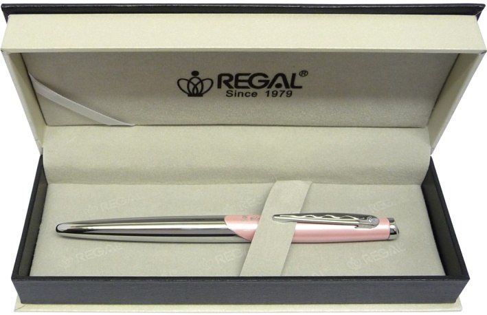 Kuličkové pero s vyměnitelnou gelovou náplní uložené v dárkové krabičce, stříbrné kovové tělo a barevné vičko se stříbrným klipem, náplň modrá + dárková taška Regal