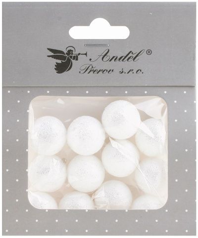 Kuličky bílé glitrové 12x1,5 cm a 6x2 cm, 18 ks