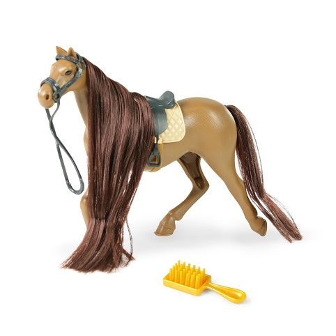 Hnědý kůň s krásnou česací hřívou a sedlem. Koníčka můžeš česat hřebenem, který najdeš v balení. Kůň je vyroben z plastu a jeho velikost je 20 cm.