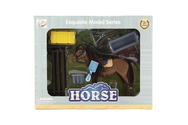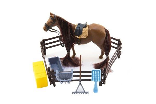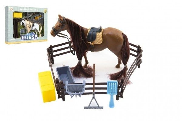 Kůň česací s doplňky a ohradou plast 2 barvy v krabici 28x22x5,5cm