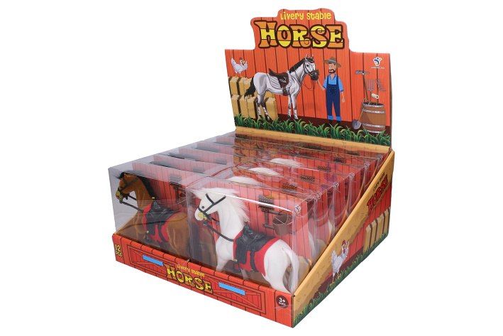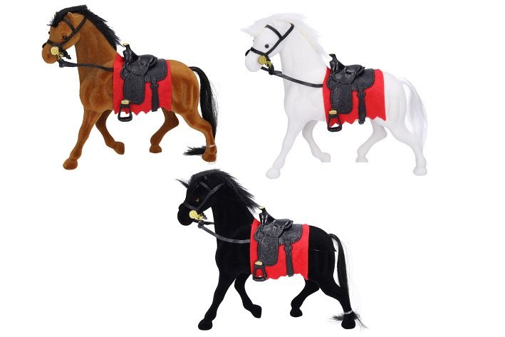 Kůň figurka. Velikost 17 cm. 3 varianty - hnědá, černá, bílá. Display box - 12 ks.
