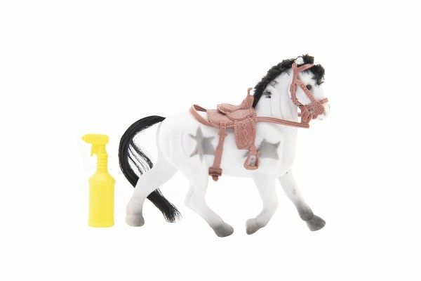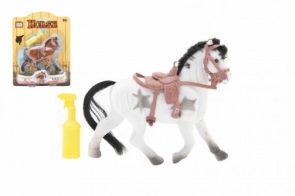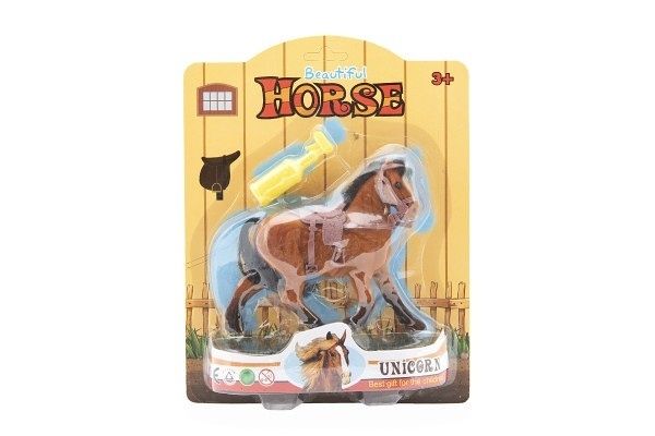 Kůň fliška 16cm se sedlem s doplňkem 3 barvy na kartě