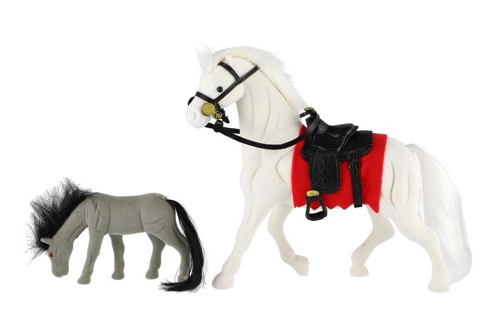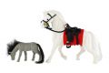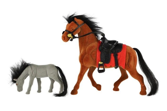 Kůň fliška 23cm se sedlem s hříbětem 3 barvy v sáčku