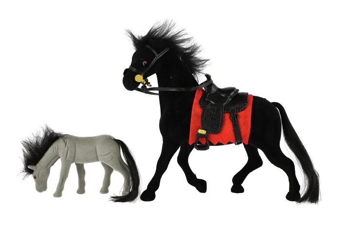 Kůň fliška 23cm se sedlem s hříbětem 3 barvy v sáčku