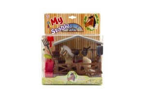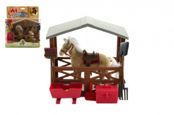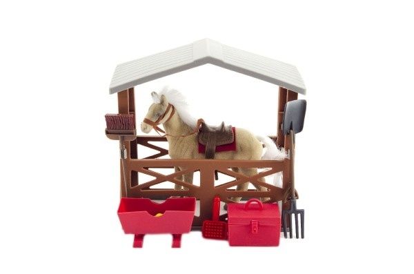 Kůň fliška se stájí a doplňky plast v krabici 23x27x9cm