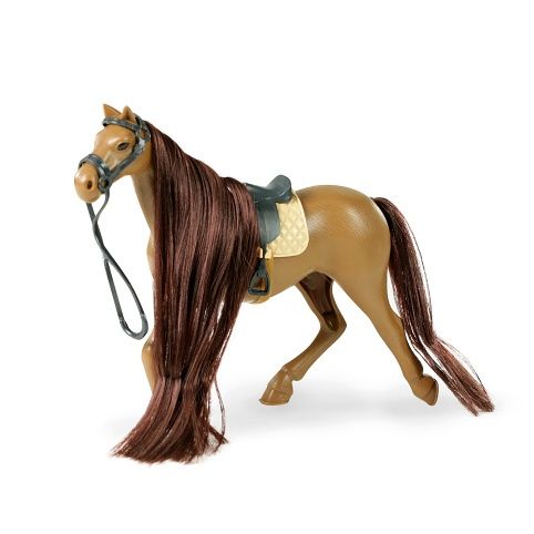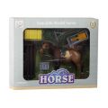 Kůň s tmavou hřívou a sedlem. Koně můžeš česat, a to třeba kartáčem, který najdeš v balení. Velikost koně 14 cm. Součástí je skládací ohrada a příslušenství. Vyrobeno z PVC.