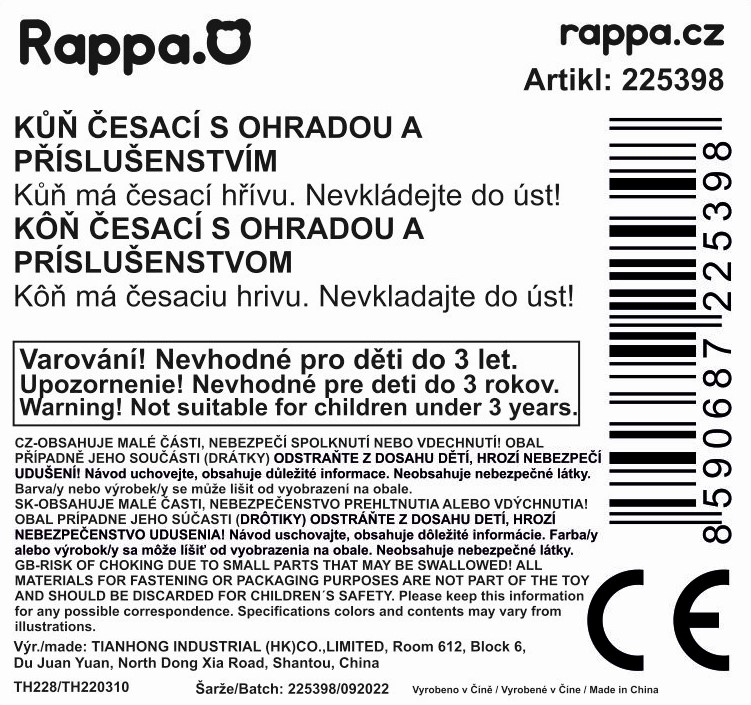 Kůň s tmavou hřívou a sedlem. Koně můžeš česat, a to třeba kartáčem, který najdeš v balení. Velikost koně 14 cm. Součástí je skládací ohrada a příslušenství. Vyrobeno z PVC.