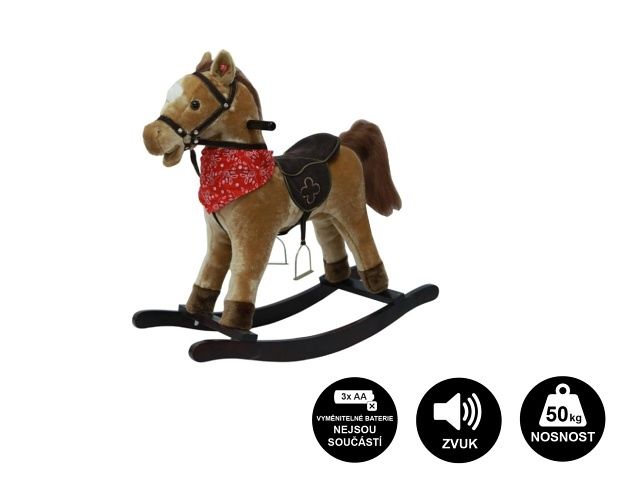 Kůň houpací hnědý plyš výška 71cm nosnost 50kg v krabici