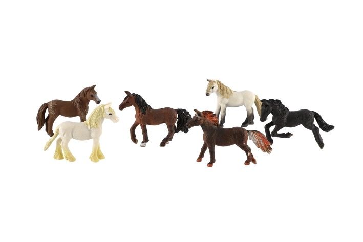 Sada figurek krásných koní, kteří určitě nemůžou chybět ve Tvé sbírce zvířátek! V balení najdeš 6 ks koníků.