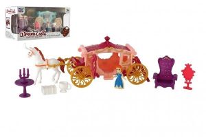 Kůň s kočárem plast 20cm s doplňky 2 barvy v krabici 24x12x10cm