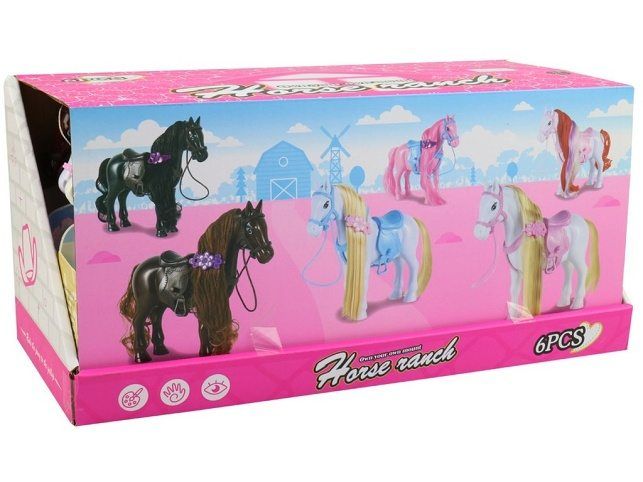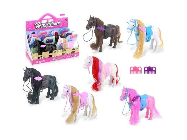 Kůň s příslušenstvím, 16,5 x 17 x 4 cm. Koník s česací hřívou, každá slečna si může vybrat sou oblíbenou barvu. Hračka je určena pro děti 3+. Rozměr hračky je 16,5 x 17 x 4 cm. Materiál hračky je plast. Balení hračky je display box. Produkt je určený pro holky.