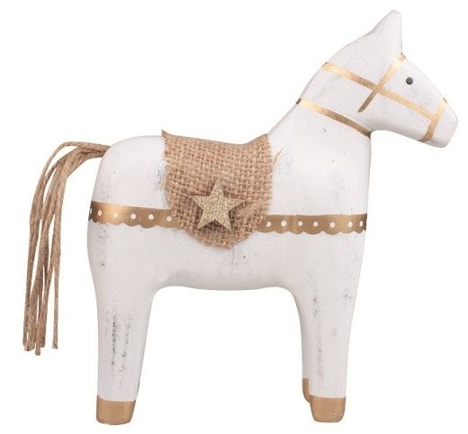 Kůň se zlatým dekorem dřevěný na postavení, 17 x 18,5 x 5 cm Tato elegantní dřevěná dekorace v podobě koně se zlatým dekorem je vkusným a rafinovaným doplňkem pro váš interiér. Detailně propracovaný design a zlaté detaily dodávají dekoraci noblesní vzhled, který skvěle ladí s jakýmkoli stylem výzdoby. Díky stabilní základně je ideální k postavení na stůl, polici nebo komodu. Využití: Kůň se zlatým dekorem je skvělý pro všechny milovníky koní, umění a elegantních, nadčasových dekorací. Skvěle doplní váš obývací pokoj, kancelář nebo vstupní prostor, kde přinese nádech elegance a luxusu. Vlastnosti: rozměry: 17 x 18,5 x 5 cmmateriál: dřevo, zlatý dekorurčeno k postaveníDřevěný kůň se zlatým dekorem přinese do vašeho domova elegantní nádech a půvab.