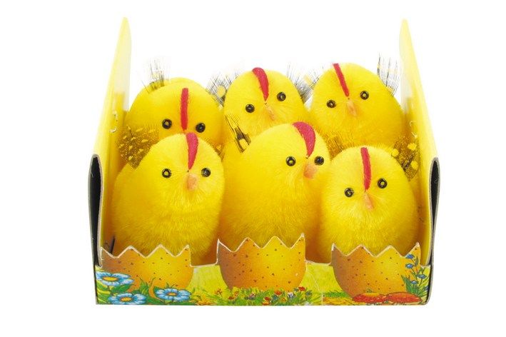 Kuřátka plyšová s peříčkem 4cm 6ks v krabičce