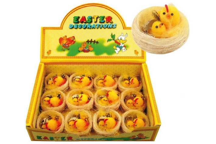 Kuřátka plyšová ve světlém hnízdě 6 cm, 12ks