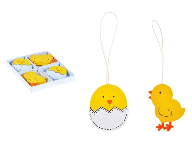 Velikonoční dekorace dřevěná - závěs s motivem kuřete 8 ks - Vyzdobte si byt velikonočními dekoracemi a přivítejte tak svátky jara. Tuto dekoraci můžete použít na dekorování velikonočních věnců nebo větviček. BALENÍ OBSAHUJE: - 8 ks dekorací (kuře a skořápka) Barva: žlutá a bílá Dekorace má provázek na zavěšení. Uvedená cena je za 1 balení.
