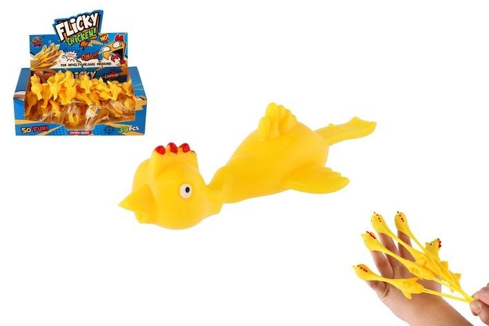 Natahovací kuře. To je bezva antistresová hračka, kterou užiješ mačkáním v dlani. Další možnost, jak se zbavit stresu s touto hračkou je, že navlékneš na prst, natáhneš druhou rukou a střelíš! Pokud se trefíš třeba na zeď, kuře tam zůstane než si pro něj přijdeš ho sundat. Rozhodně tě špatná nálada a stres s tím kuřátkem opustí!