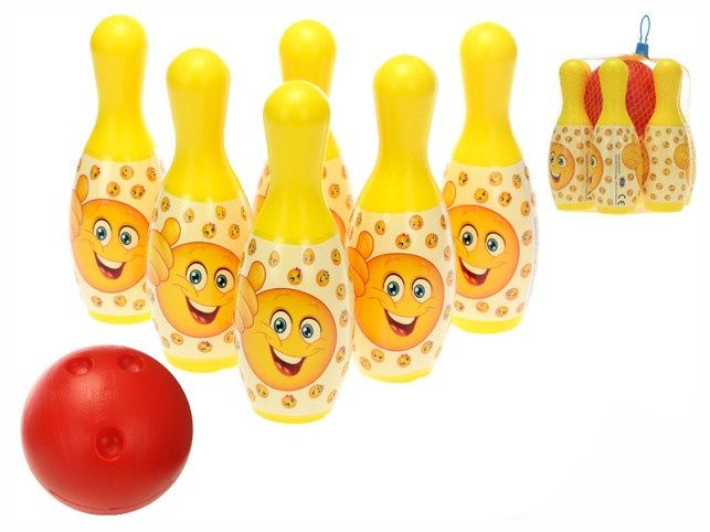 Veselé plastové kuželky o velikosti 19cm s veselými smajlíky. Zhoďte všech 6kuželek pomocí míčku a staňte se šampiony.