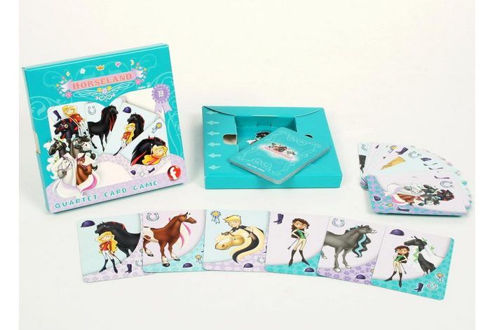 Karetní hra kvarteto s motivem Horsland Jednoduché barevné obrázky bez textu vhodné i pro nejmenší začínající hráče. Kvarteto dětská karetní hra. Kvarteto se hraje se 32 speciálními kartami, na nichž jsou obrázky, zpravidla tematicky zaměřené. Karty jsou rozděleny do 8 skupin (označení 1–8) po čtyřech (A–D) tak, aby k sobě obrázky ve čtveřici logicky patřily. Tyto čtveřice jsou označovány jako kvarteta. Na každé kartě jsou uvedeny názvy ostatních karet z daného kvarteta. Hry se musí zúčastnit minimálně 3 hráči, kterým jsou pokud možno rovnoměrně rozděleny karty. Začínající vyzve jakéhokoliv jiného hráče, aby mu předal kartu, kterou určí (písmenem, číslem a názvem). Podmínkou je, že sám musí mít aspoň jednu kartu z kvarteta, ke kterému přísluší požadovaná. Pokud vyzvaný hráč danou kartu vlastní, musí ji předat tazateli. V opačném případě dostává slovo vyzývaný a začíná se ptát na kvarteta ostatních. Pokud hráč shromáždí celé kvarteto, pokládá ho a získává bod. Vítězí hráč s nejvyšším počtem bodů. Některé hry kvartet jsou i s jiným počtem hracích karet, pravidla však zůstávají stejná.