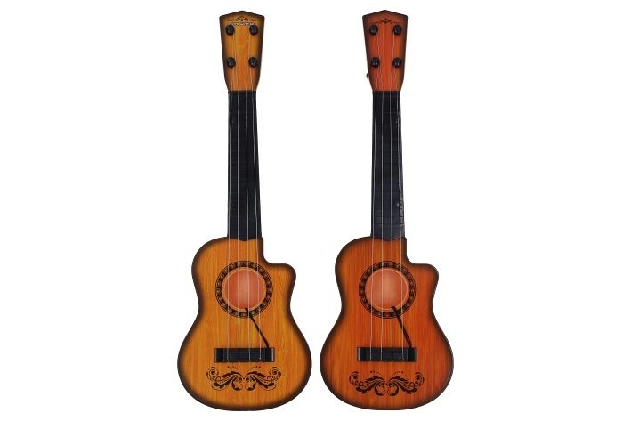 Kytara pro nejmenší. Délka 42 cm. Balení obsahuje i trsátko. 2 varianty - světlá, tmavá.