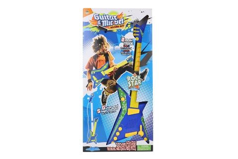Kytara a mikrofon na baterie. Napájení na 3 AA baterie (nejsou součástí). Rozměry kytary cca 50 x 18 cm. Rozměry balení cca 28 x 57 x 6 cm. Věk 3+