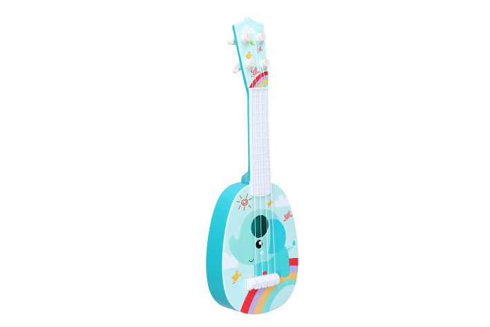 Kytara dětská, motiv africká zvířata. 4 umělé struny. Délka 37 cm. 2 varianty - slon, žirafa.