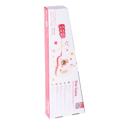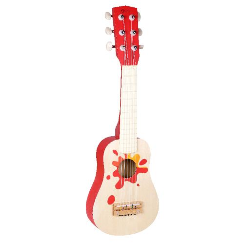 Dřevěná hudební kytara se šesti strunami zaujme jistě každého malého kytaristu. Kytara výborně rozvíjí rytmus a učí soustředěnosti. Detailní zpracování s důrazem na pěkný zvuk potěší všechny malé muzikanty. Tato hračka rozvíjí u dětí jejich zručnost, hudební talent a sluch. Upozornění: Obsahuje šňůru(strunu), hrozí nebezpečí uškrcení!