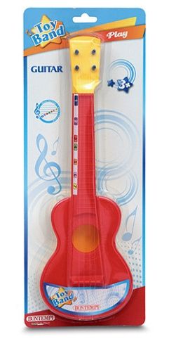 Kytara „Španělka“ plastová červená se 4 nylonovými strunami.