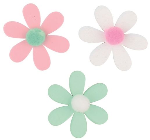 Kytička dřevěná s lepíkem 3 cm 18 ks růžová, modrá, bílá