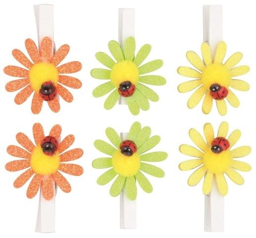 Kytičky s glitry a beruškou na kolíčku 5 cm, 6 ks v sáčku