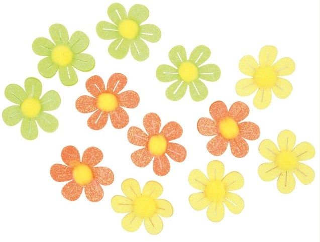 Kytičky samolepicí s glitry 3 cm, 12 ks v sáčku