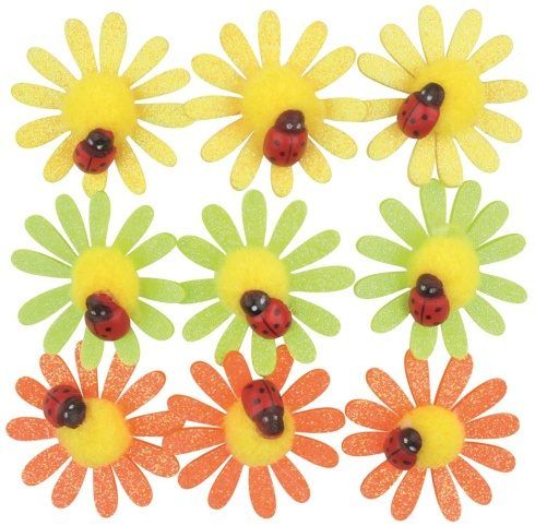 Kytičky samolepicí s glitry a beruškou 4 cm, 9 ks v sáčku