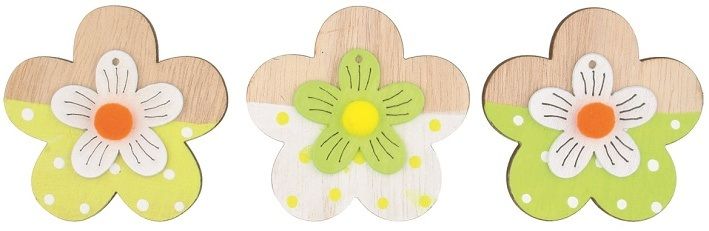 Kytka dřevěná 6,5 cm na kolíčku 3 ks