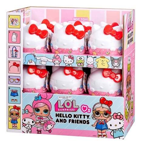 L.O.L.Surprise! se spojilo s ikonickou Hello Kitty. V obalu ve tvaru kočičky s červenou mašlí najdeš jednu panenku inspirovanou Hello Kitty nebo jejími přáteli, a to My Melody, Kuromi, Pompompurin, Cinnamoroll, Tuxedo Sam, Keroppi a Pochacco. Obsah balení:?1 panenkamódní doplňky inspirované ikonickými postavičkamV této sérii můžeš sesbírat 8 postaviček.