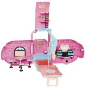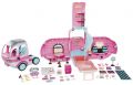 s růžovými detaily a funkčními světly. Karavan lze rozpojit, můžeš jej tedy rozložit na samostatné auto a dům.