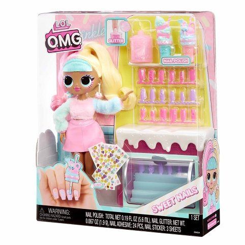 OMG Velká ségra přináší unikátní nehtové studio. Dopřej si zážitek z dokonalé manikúry. V balení najdeš více než 15 překvapení včetně nalepovacích nehtů, pilníku a laků na nehty. Každá panenka má jiné tematické studio. Nehty si můžeš ozdobit podle svého vkusu samolepkami a třpytkami.Obsah balení:?• 1 OMG Velká ségra, 3 módní doplňky, 1 pár náušnic, 1 pár bot• 2 laky na nehty• 24 barevných nalepovacích nehtů• 24 lepenek pod nehty• 3 listy se samolepkami na nehty• 1 sáček se třpytkami, 1 lahvička na třpytky• 1 pilníkVelikost OMG panenky: cca 25 cm.