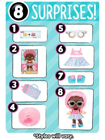 Rozbal mnoho překvapení s třpytivou Sportovní hvězdou ze série 7. Oblíbené postavičky získaly třpytivý vzhled a přicházejí s oslnivými sportovně laděnými doplňky. Každá z panenek má jedinečnou interaktivní funkci. Některé panenky umí kopat a jiné zase třeba hrát tenis. Každá ze třpytivých sportovkyň má také svou vlastní sběratelskou kartičku, kterou lze použít jako pěkné pozadí při focení. Panenky mohou měnit barvu na slunci. Získej všech 12 sportovních postaviček! Obsah balení:• 1 L.O.L. panenka s třpytivými detaily a sportovními doplňky