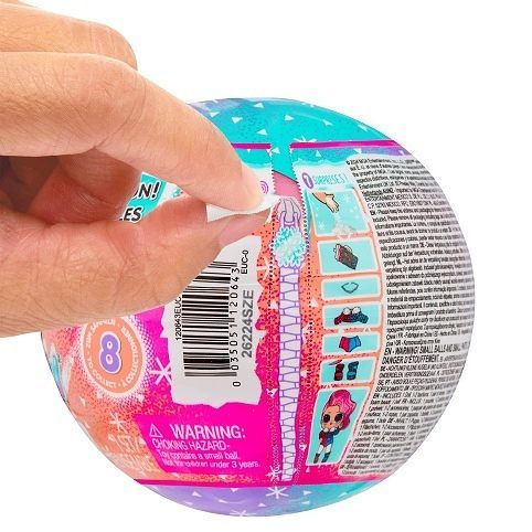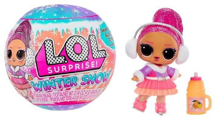 Rozbal jednu z osmi oblíbených L.O.L. panenek v zimním outfitu. Panenky mají ve vlasech třpytky, a pokud dáš panence napít, můžeš sledovat, jak se třpytky ve vlasech hýbou a usazují. Polovina balení obsahuje kinetický písek, ve kterém jsou ukryté doplňky, a v průhledné kouli písek vypadá jako sníh.Obsah balení:?• 1 panenka• 1 outfit• doplňkyVelikost L.O.L. panenky: cca 8 cm.