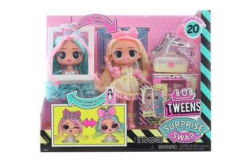 Získej 4 nové divoké a stylové Tweens panenky. V balení s panenkou najdeš mini česací hlavu a různé vlasové doplňky, díky kterým vykouzlíš dokonalý účes. Panence můžeš vyměnit hlavu podle toho, jaký styl se bude hodit k jejímu outfitu. Česací hlava má jiný výraz tváře, jinak barevné a jinak upravené vlasy. Můžeš kombinovat mezi všemi Swap Tweens panenkami. Výška panenky cca 16,5 cm. Obsah balení:1 ze 4 Swap Tweens panenek, mnoho překvapení, včetně různých módních doplňků, kartáč na vlasy, stojan na panenku. Věk 4+