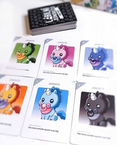 Labilní jednorožci pro děti je karetní hra, která i mladším hráčům představuje kouzelný svět jednorožců a strategických her. Tato hra pro 2-6 hráčů od 6 let přináší kouzelné postavy a roztomilé kresby, které si děti zamilují.Původní hra Labilní jednorožci získala ocenění People's Choice Award 2019 v kategorii Hračka roku, na Kickstarteru se dostala mezi 100 nejpodporovanějších projektů všech dob a po celém světě se jí prodalo přes milion výtisků!Jak na hru?Hru začíná nejmladší hráč a hráči se střídají v tazích ve směru hodinových ručiček. Po vašem tahu je na řade hráč po vaší levici. Každý tah se skládá ze 2 fází. Fáze 1: DOBERTE si kartu z balíčku. Fáze 2: Proveďte JEDNU z následujících akcí: Zahrajte kartu jednorožce ze své ruky. Zahrajte kartu kouzla ze své ruky. DOBERTE si další kartu z balíčku. Vítězem je hráč, který jako první nasbírá ve své Stáji 7 jednorožců!Obsah balení: 32 karet barevných jednorožců8 karet jednorožcích mimin32 karet kouzel8 íhaha karet1 česká a slovenská pravidla