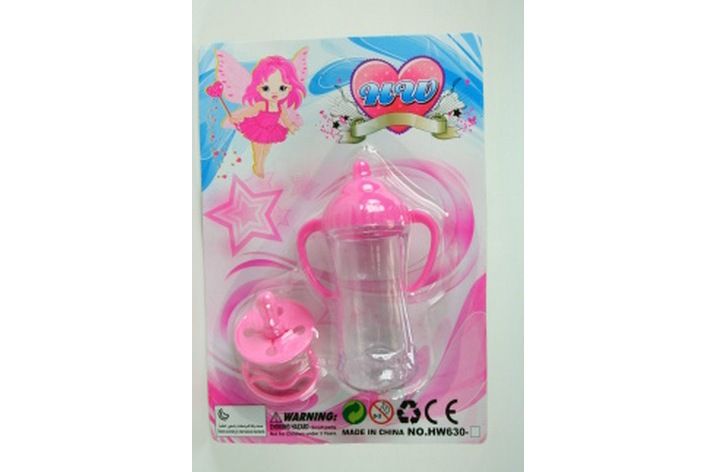 Plastová lahvička a dudlík pro panenky.Lahvička cca 11cm, dudlík cca 6cm.
