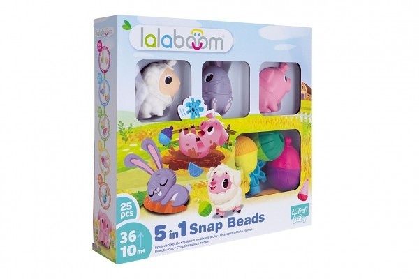 Lalaboom – Sada spojovacích korálkových bloků Zvířecí farma plast 25 dílů v krabici 30x28