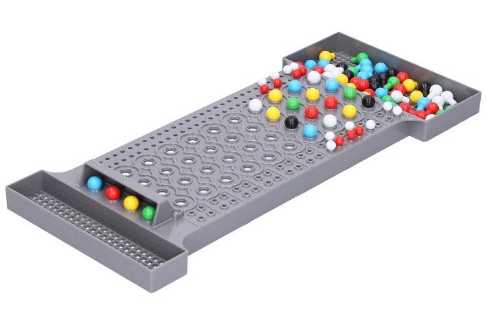 Lamač kódů společenská hra. Obsah balení- návod, hrací deska, 108 kódovacích kolíků v 6 barvách, 30 červených indikačních kolíku, 30 bílých indikačních kolíků.