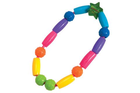 Vyrobeny z trvanlivého materiálu.Napomáhají při prořezávání zubů.Barvy podporojí rozvoj zraku.Různé tvary korálků stimulují rozvoj hmatu.Korálky jsou navlečeny na extra silném plastovém provázku zabraňujícímu přetržení. Věk 3m+