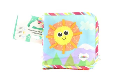 Klasická Lamaze textilní knížka. Na stránkách jsou barevné obrázky a vzory, které stimulují zrak. Šustící stránky a různé druhy materiálů s různými povrchy vybízejí děťátko ke zkoumání, čímž dítě rozvíjí svou jemnou motoriku a hmatové vnímání. Knížka obsahuje různé druhy materiálů stimulující hmat dítěte a klip pro snadné připnutí. Hračka je vyrobena z kvalitního veluru. Věk 0m+