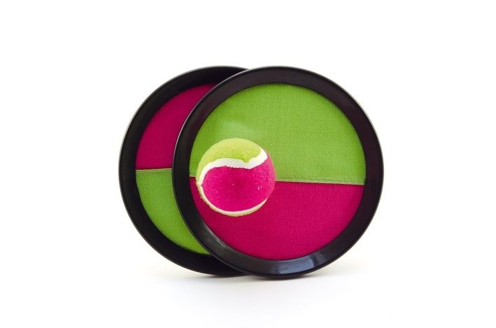 Hra obsahuje dva terčíky se suchým zipem a míčkem, který se díky suchému zipu na terčíku zachytí. Zábavná hra pro celou rodinu.