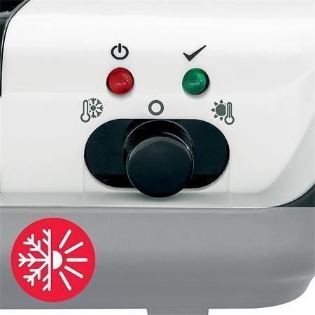 LED kontrolka, která indikuje, že je zařízení zapnuto (červená) a připraveno k laminaci (zelená)